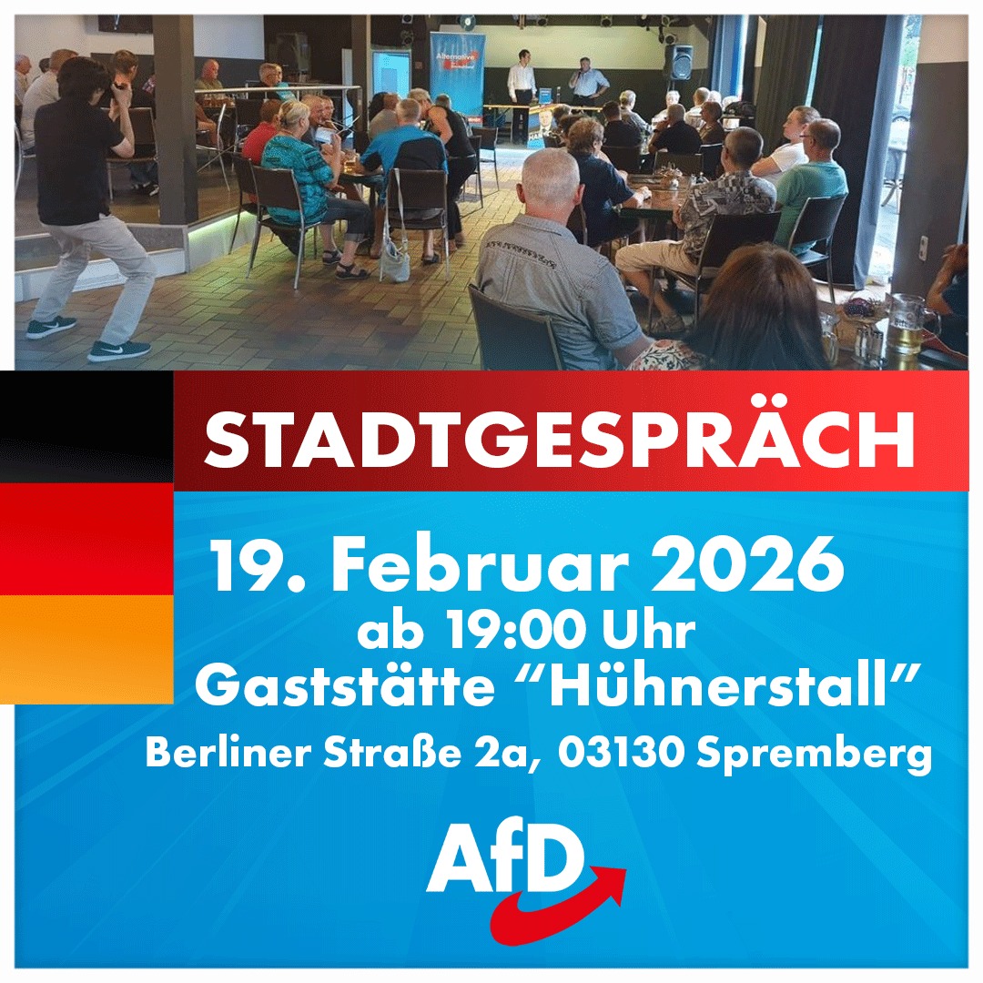 Wir laden Sie herzlich zu unserem Stadtgespräch im Februar ein. Informieren Sie sich aus erster Hand über die aktuellen kommunalpolitischen Geschehnisse in #Spremberg, Spree-Neiße und dem Land und kommen Sie
