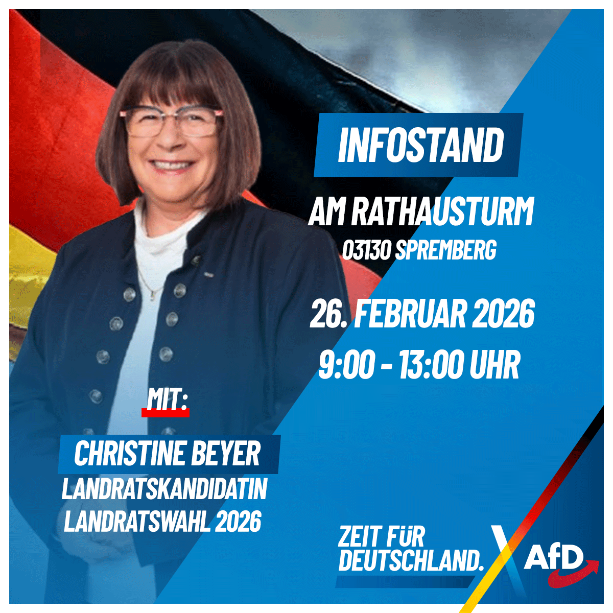 Gemeinsam mit meinem Kollegen aus dem Brandenburger Landtag, Daniel Münschke, sowie unserer Landratskandidatin für die Landratswahl 2026, Christine Beyer, lade ich Sie herzlich ein, mit uns ins Gespräch zu kommen.…