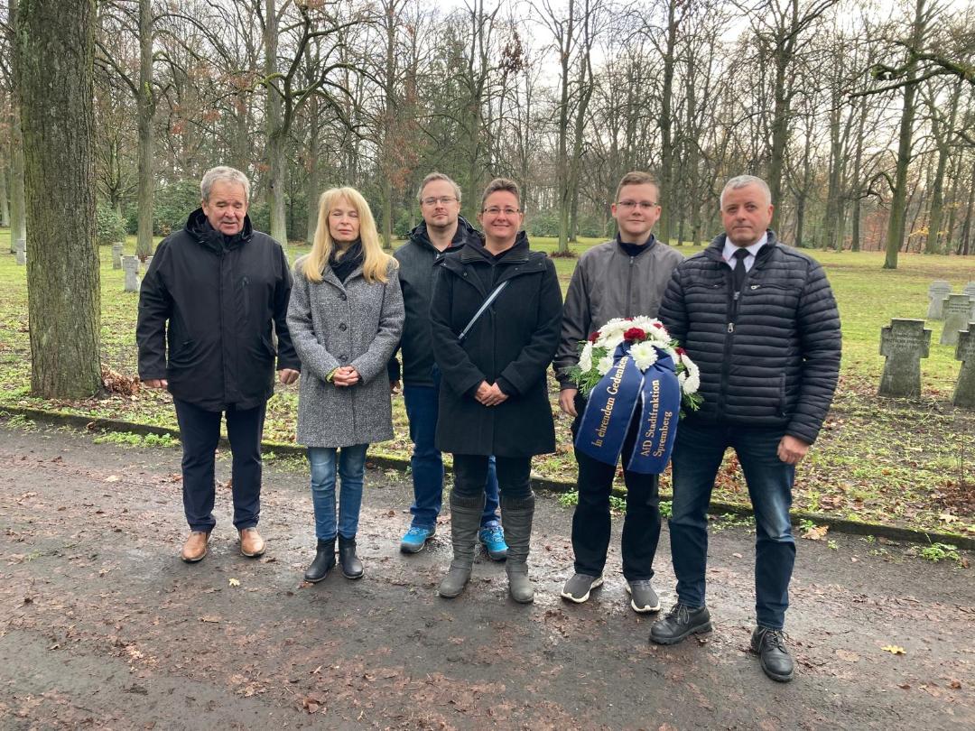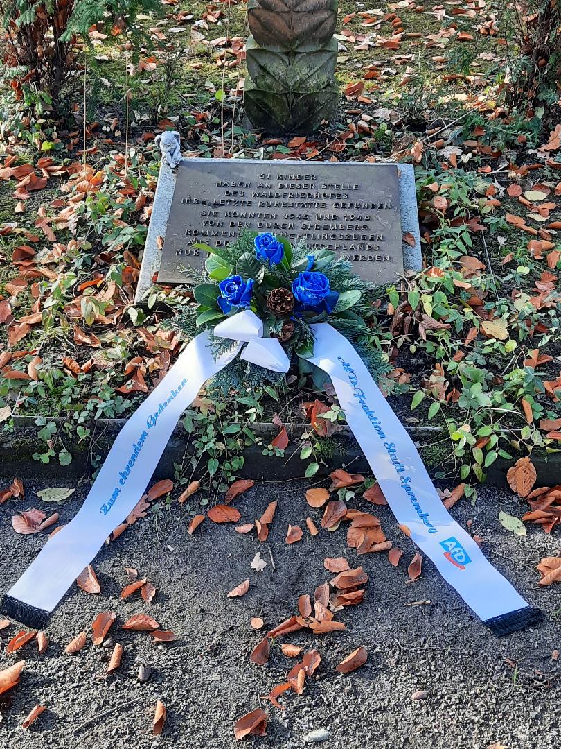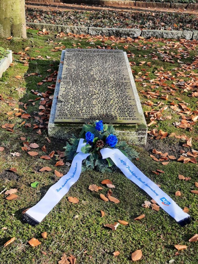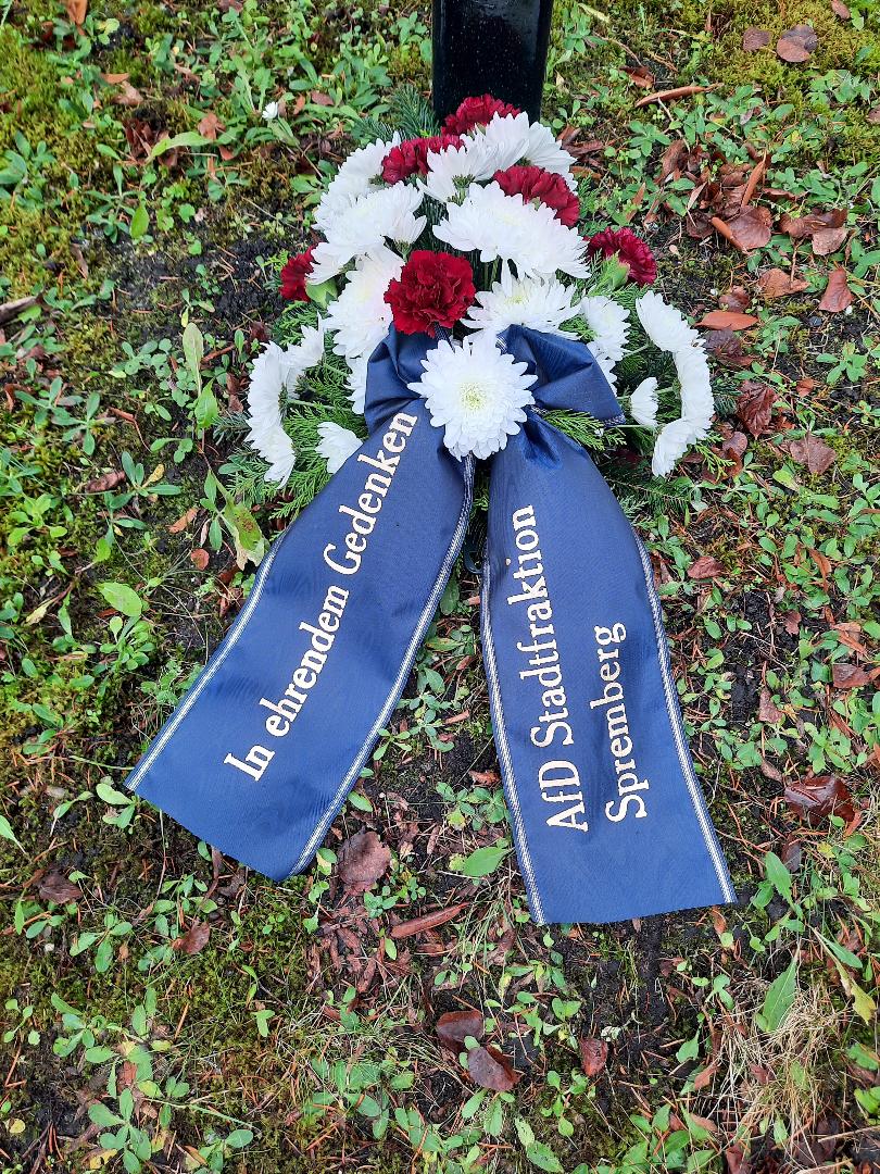 Anlässlich des heutigen Volkstrauertages gedachten die Mitglieder der #AfD-Stadtfraktion Michael Hanko, Frank Henschel und Ulrike Meier sowie die sachkundige Bürgerin Annette Schade auch dieses Jahr wieder den zivilen Opfern sowie den gefallenen #Soldaten des 1. und 2. Weltkrieges. Hierzu wurden Gedenkkränze und Blumen auf den deutschen Kriegsgräberstätten auf dem Georgenberg, in Weskow, in Trattendorf und dem Waldfriedhof #Spremberg niedergelegt.