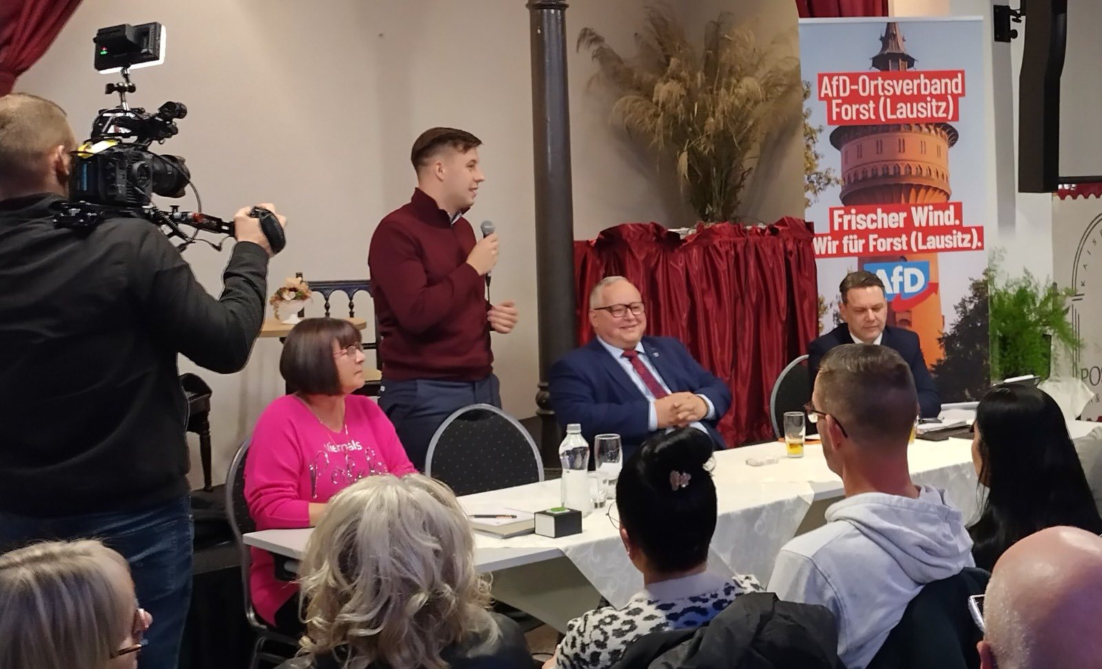 Der AfD Ortsverband Forst (Lausitz) hatte zu einem größeren Bürgerdialog eingeladen. Diesmal waren neben unseren Bürgermeisterkandidat Ingo Bochmann und unserer Landratskandidatin Christine Beyer als Gäste unsere Landtagsabgeordneten Steffen Kubitzki und Jean-Pascal Hohm dabei. Steffen Kubitzki eröffnete in einem gut gefüllten Saal die Veranstaltung und übergab danach den Kandidaten zur Vorstellung das Mikrofon. Ingo Bochmanns und Christine Beyers Redebeiträge fanden bei allen Anwesenden Zustimmung und ernteten viel Beifall. Beide gaben Einblick in ihren persönlichen und beruflichen Lebensweg, begründeten ihren Willen zur Kandidatur und gaben einen kurzen Einblick in ihre Visionen. Anschließend sprach Jean-Pascal Hohm über die Politik im Landtag und seine Erfahrungen aus Gesprächen mit vielen Bürgern. Trotz aller Probleme in Deutschland sieht er aber auch aus diesen Erfahrungen positiv in die Zukunft. Danach wurde der Dialog eröffnet. Es wurden wieder viele Fragen zur Kommunalpolitik der Stadt und des Landkreises gestellt. Christine Beyer und Ingo Bochmann konnten umfassend Auskunft geben und die Positionen der AfD-Fraktionen erläutern. Aus dem Besucherkreis kamen wieder viele Fragen und Anregungen zur Verbesserung unserer Stadt und deren Umfeld. Wir danken den Forster Bürgern für ihr Interesse an der Stadtentwicklung und Kommunalpolitik. Ein besonderer Dank gilt auch unseren AfD Volksvertretern und den Wirtsleuten welche uns diese Veranstaltung ermöglichten.