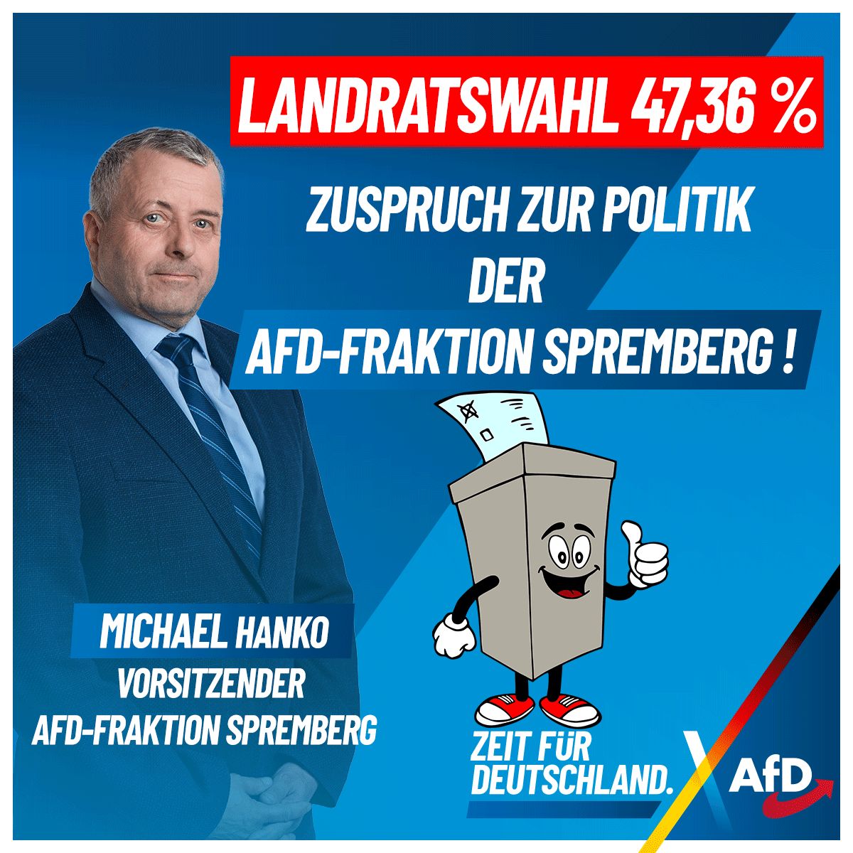 Beitragsnavigation Grandioses Ergebnis bei der Landratswahl in Spree-Neiße: 42,41 % im ersten Wahlgang! Endspurt im Landratswahlkampf: Tino Chrupalla kommt nach Spree-Neiße!
