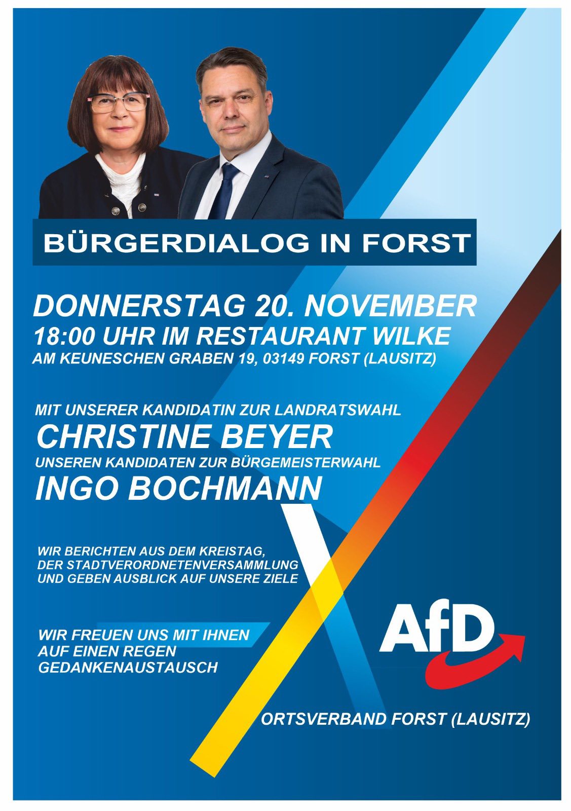 Wir laden Sie herzlich zu einem offenen Bürgerdialog in die Alten Färbereien (Guben) ein. Gemeinsam mit meinem Landtagskollegen, dem Vizepräsidenten des Brandenburger Landtages, Daniel Münschke, möchte ich mit Ihnen ins…