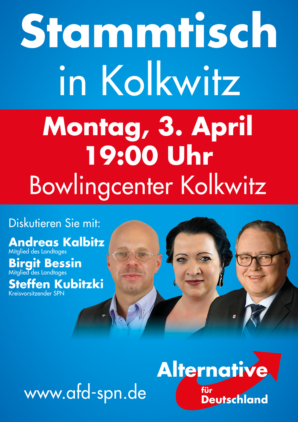 Der AfD Kreisverband Spree-Neiße lädt Sie recht herzlich zum politischen Stammtisch nach Kolkwitz ein.