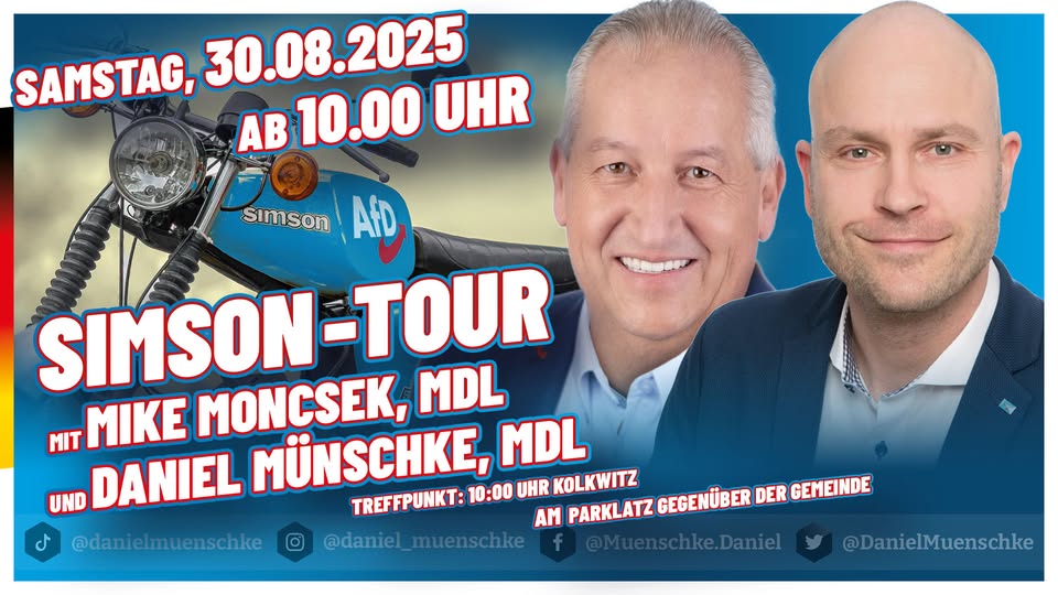 Mein Parteikollege und Freund Mike Moncsek aus dem Landtag Sachsen wird ebenfalls dabei sein!