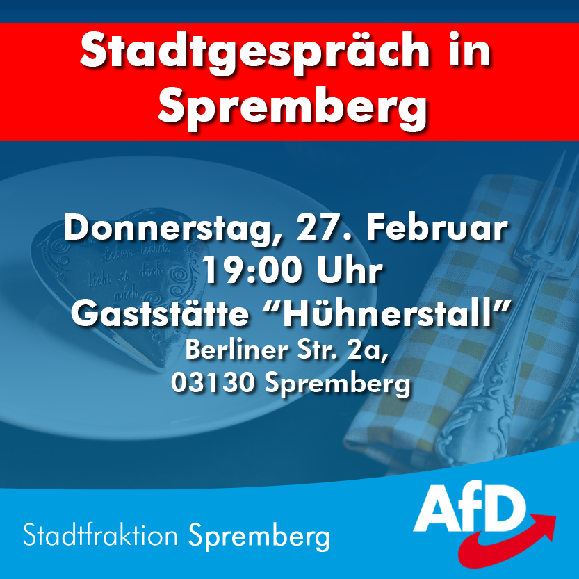 Wir laden Sie recht herzlich zu unserem monatlichen Stadtgespräch nach Spremberg in die Gaststätte „Hühnerstall“ ein.